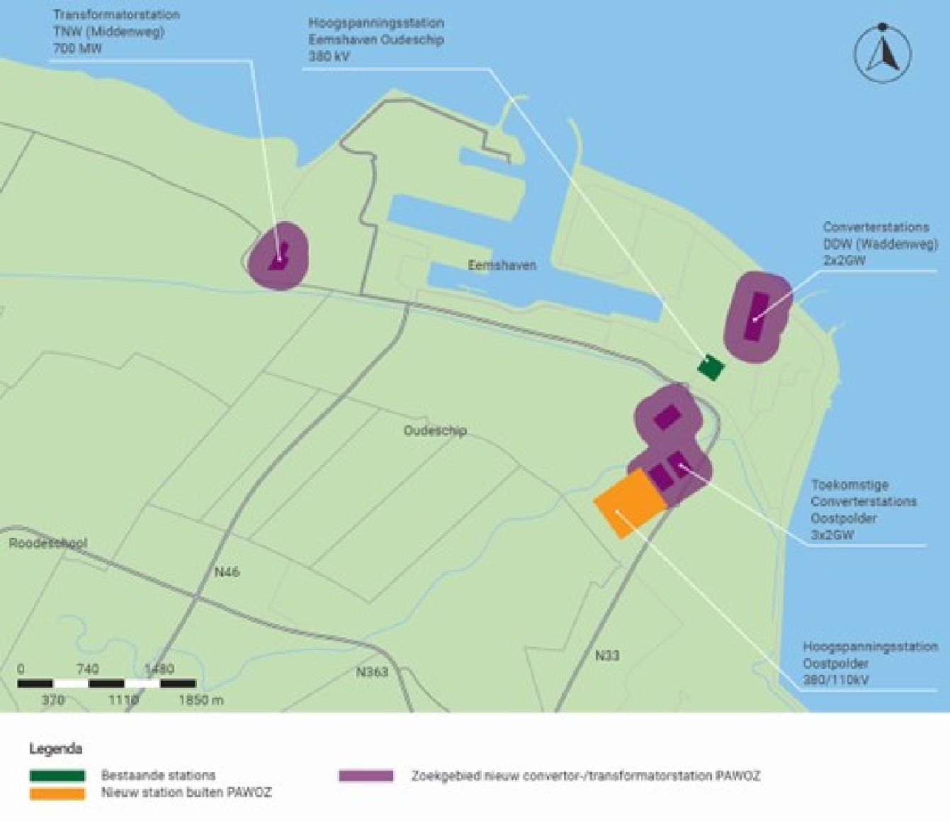 Uit het eerdere onderzoek Verkenning Aanlanding Wind op Zee (VAWOZ 2030)3 is gebleken dat de regio Eemshaven in Noord-Nederland van groot belang is om kabelverbindingen en waterstofleidingen aan land te laten komen. Daar is namelijk veel vraag naar de duurzame energie vanuit de regio en de industrie van windenergiegebieden. Daarnaast ligt in de regio Eemshaven een goed energienetwerk en is er ruimte in het huidige energiesysteem om daar voldoende energie te transporteren.