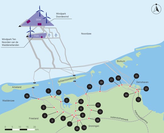 Ten Noorden van de Waddeneilanden (hierna: TNW) aan te sluiten met waterstof op het Waterstofnetwerk Nederland en/of op het Waterstofnetwerk Groningen.