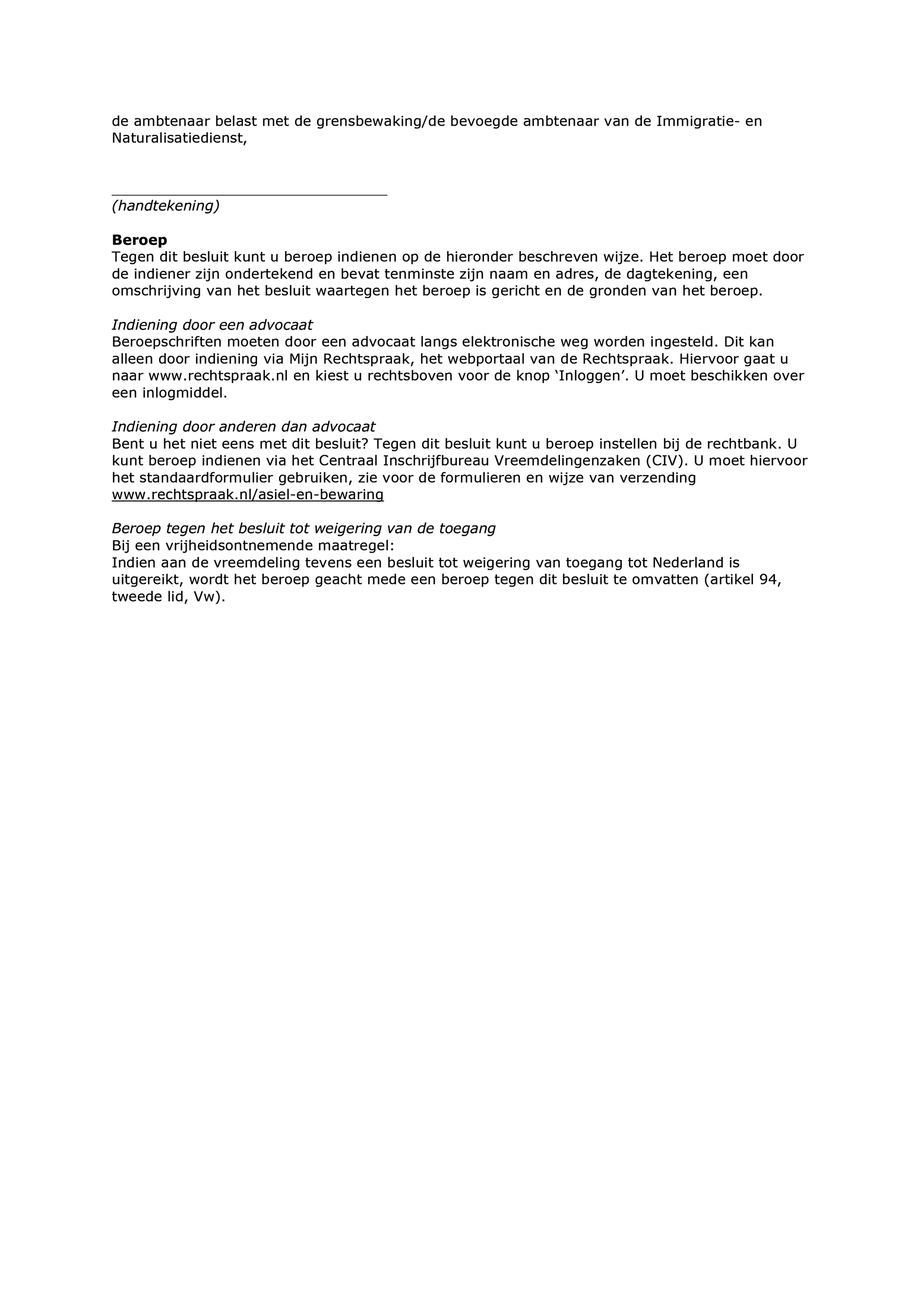 • de IND als de beroepsprocedure op grond van artikel 94 en artikel 96 Vw wordt gevolgd.