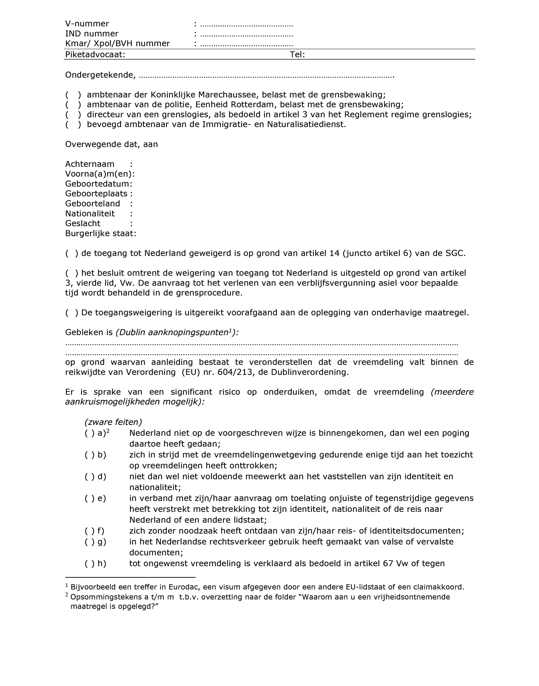 Tot slot zijn de gronden c en i uit model M19-A verwijderd, omdat deze gronden niet van toepassing zijn op de Dublinclaimant.