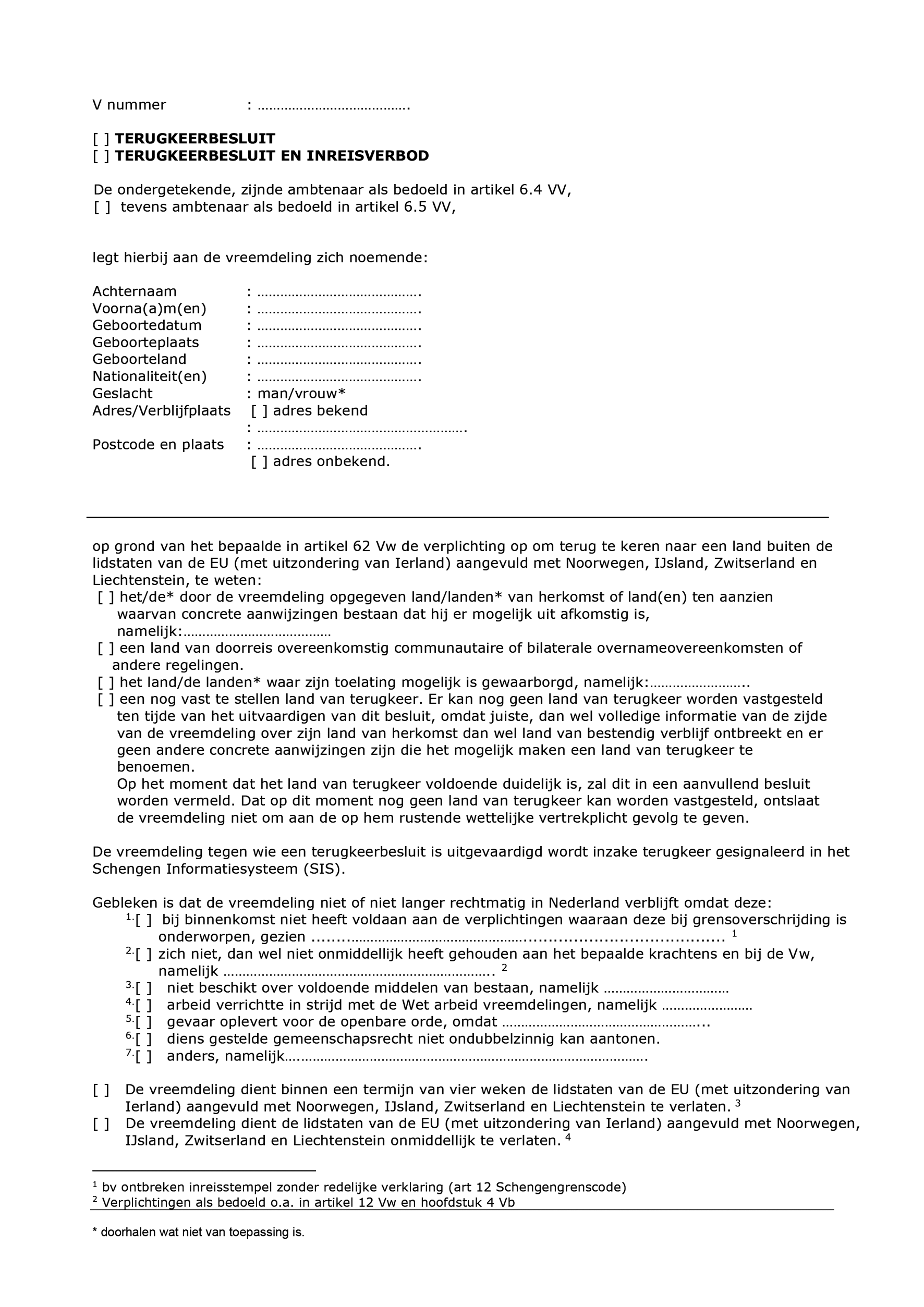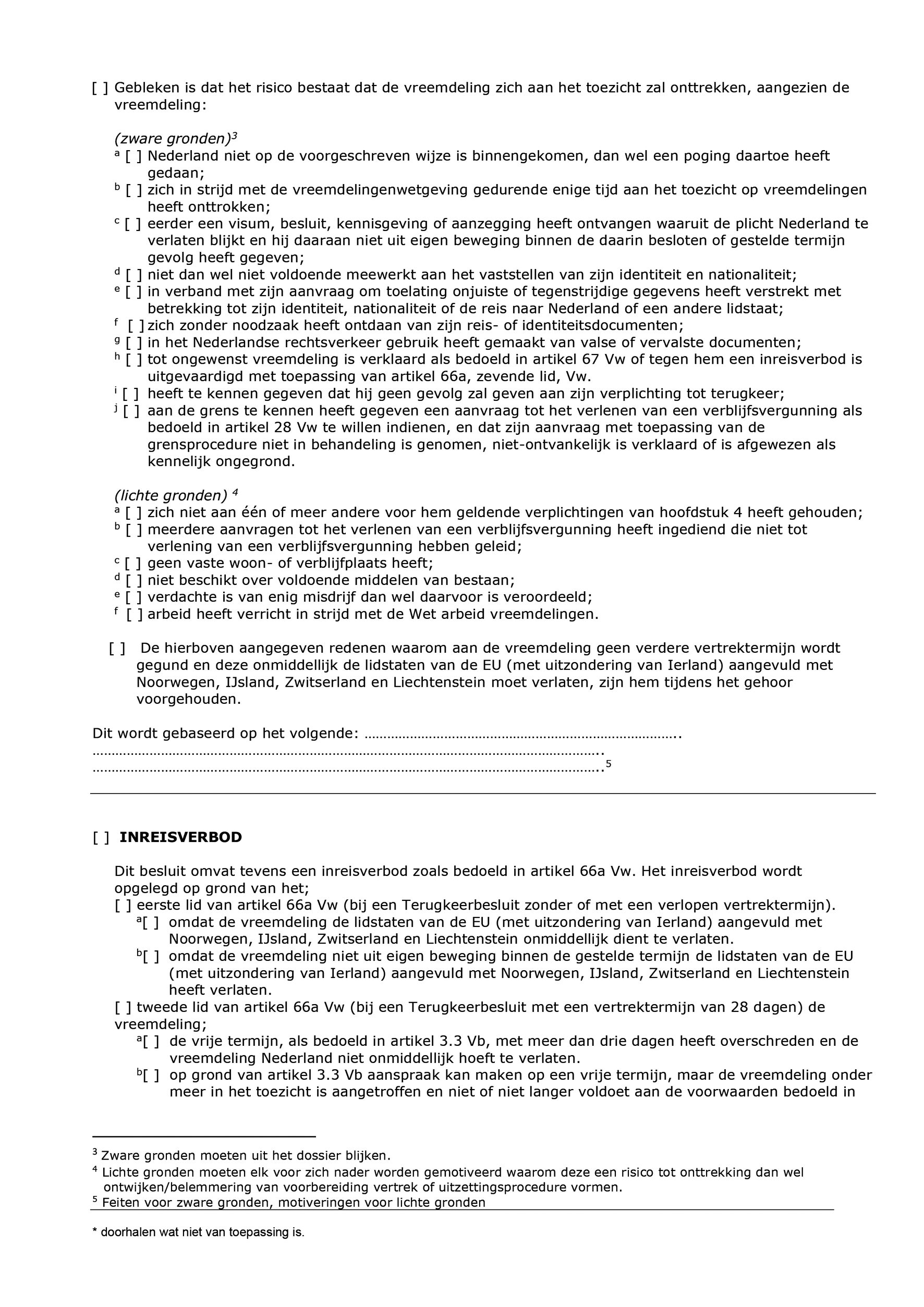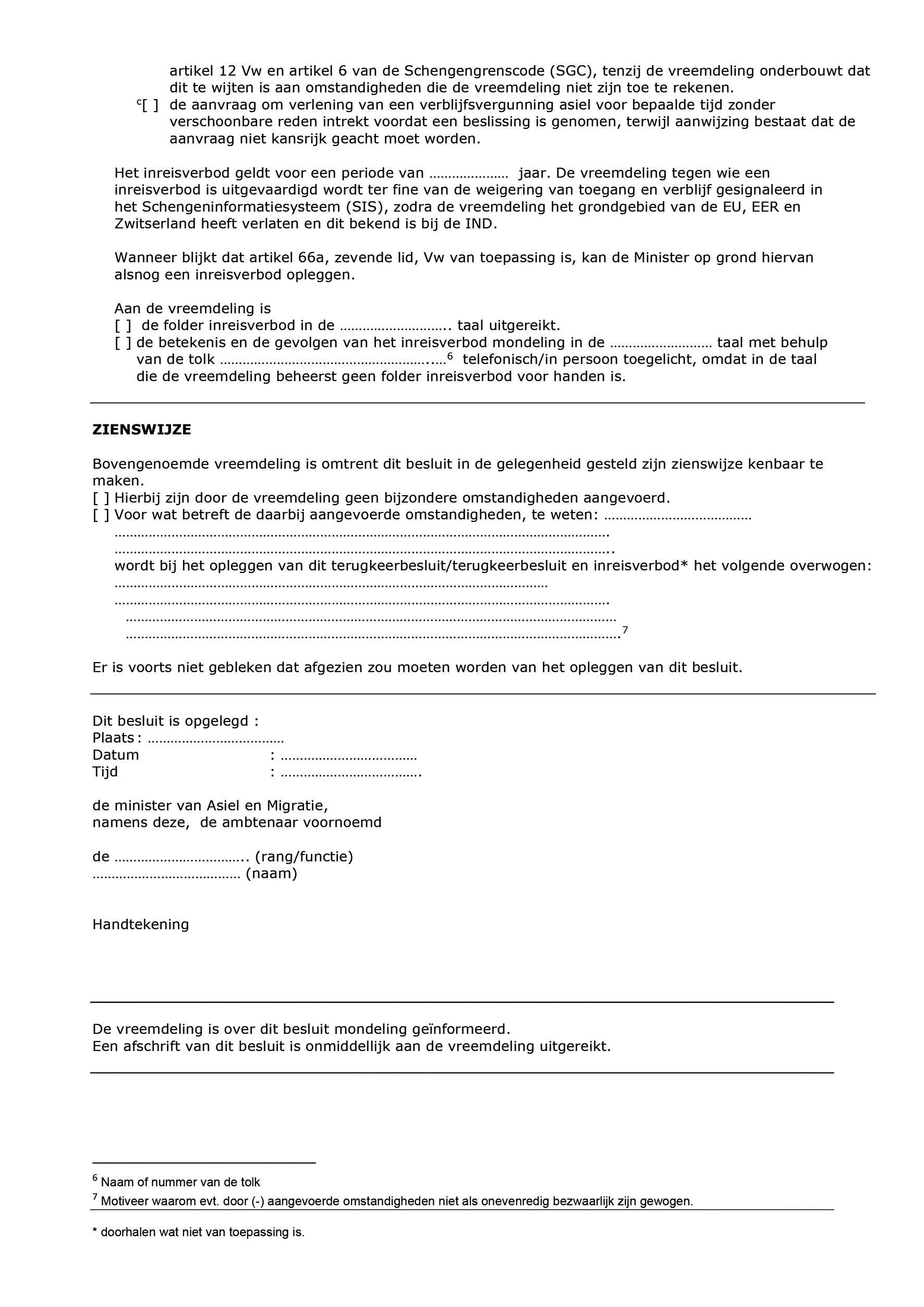 Model M107-A: Kennisgeving als bedoeld in artikel 62a Vw, al of niet gepaard met een inreisverbod als bedoeld in artikel 66a, eerste of tweede lid, Vw.