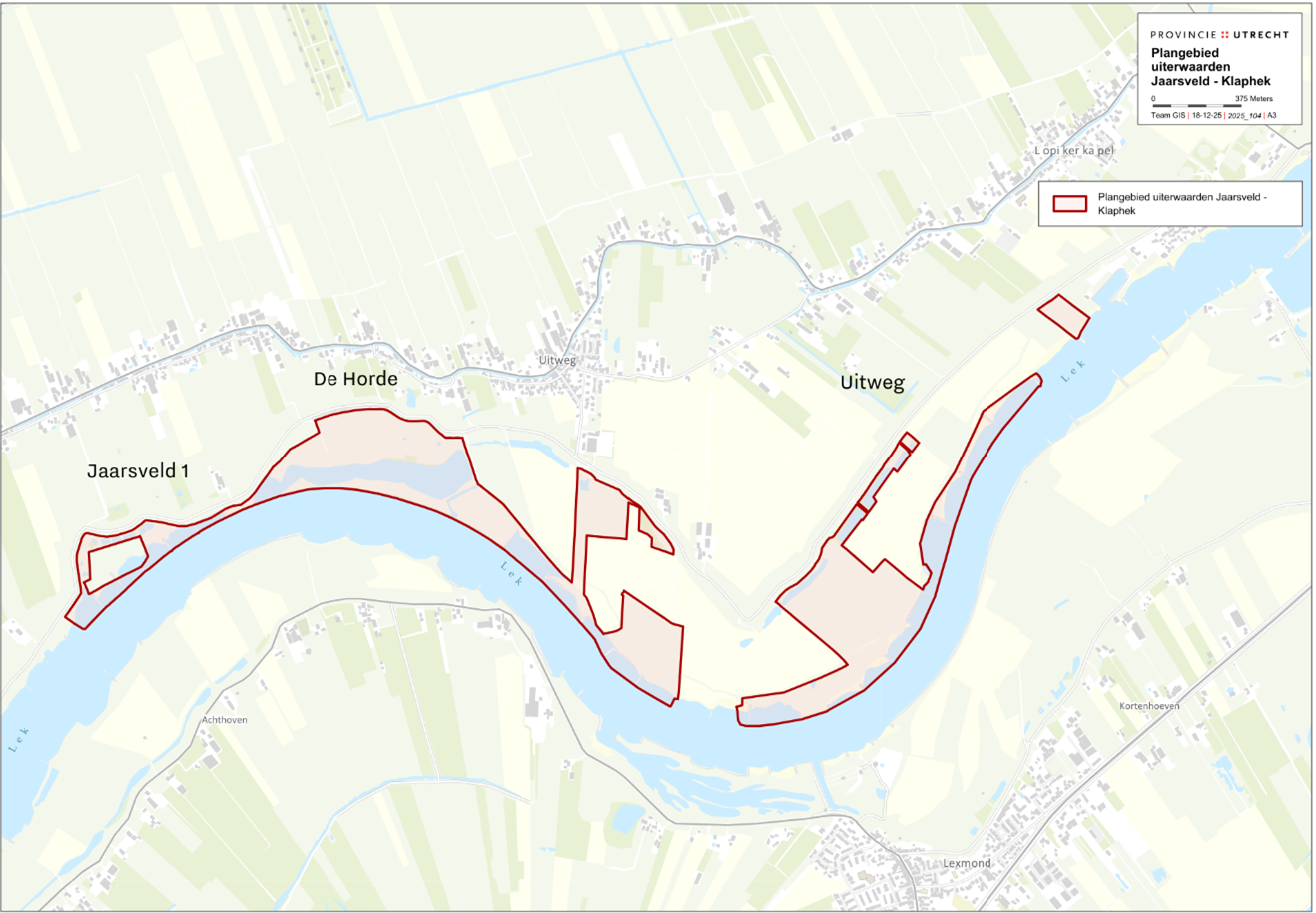 Rijkswaterstaat en de provincie Utrecht werken aan een plan om de ecologische waterkwaliteit in de uiterwaarden van de Lek tussen Jaarsveld en Klaphek te verbeteren. Dit is een nationale opgave vanuit de Europese Kaderrichtlijn Water (KRW). Tegelijk wil de provincie bijdragen aan doelen van Natuurnetwerk Nederland (NNN) en Natura 2000. Een oplossing voor deze opgave in de fysieke leefomgeving is het aanleggen van natuurvriendelijke oevers en het verbeteren en uitbreiden van een getijdengeul. Hiervoor wordt op grond van de huidige inzichten een projectbesluit genomen, zoals bedoeld in artikel 5.44 van de Omgevingswet. Met deze kennisgeving informeren we iedereen over de planuitwerking . Ook leest u hoe u op de kennisgeving kunt reageren en waar u informatie kunt vinden.