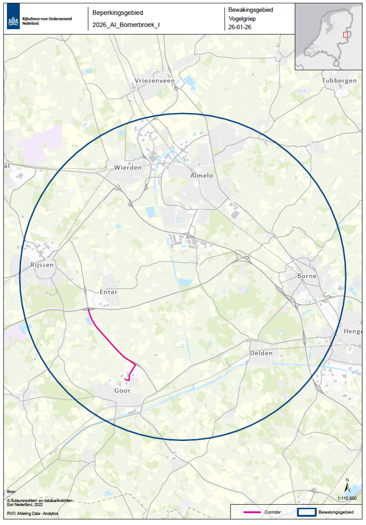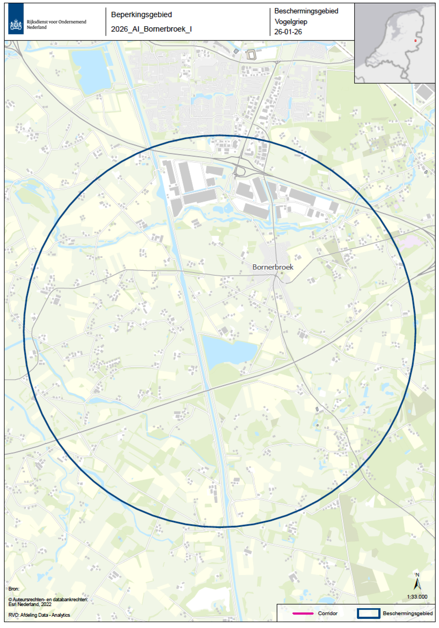 Op een inrichting in Bornerbroek in de provincie Overijssel is een uitbraak geconstateerd van aviaire influenza, waarschijnlijk hoogpathogene aviaire influenza (HPAI), ofwel vogelgriep. HPAI is een besmettelijke dierziekte, die tot hoge sterftecijfers kan leiden bij vogels en kan worden overgedragen op mensen (een zogenoemde zoönose). Het isoleren van de gevonden besmettingshaard en het voorkomen van verdere verspreiding van de ziekte is daarom van het grootste belang.