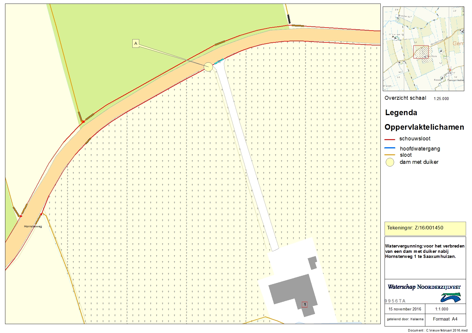 Watervergunning voor het verbreden van een dam met suiker nabij Hornsterweg 1 te Saaxumhuizen.