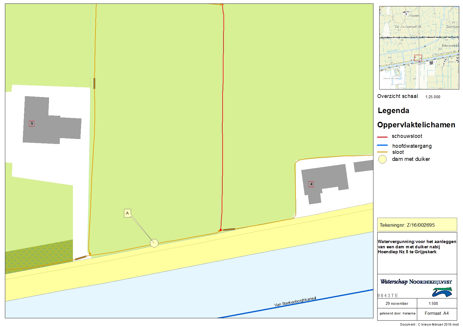 Titel Watervergunning voor het aanleggen van een dam met duiker nabij Hoendiep NZ 5 te Grijpskerk.