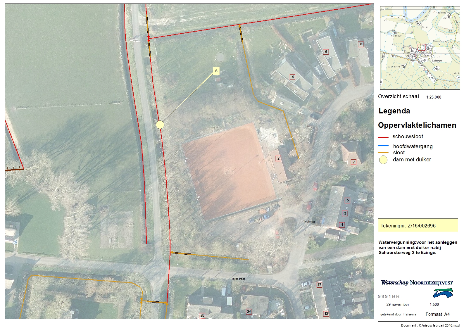 Watervergunning voor het aanleggen van een dam met duiker nabij de Schoorsterweg 2 te Ezinge.