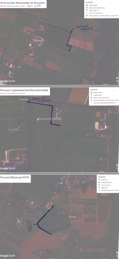 Dit is op de percelen, kadastraal bekend als gemeente Boxtel, sectie N, nummer 776 en gemeente Oirschot sectie L nummer 1180 en sectie H. Secties 953, 954, 955 en 971.