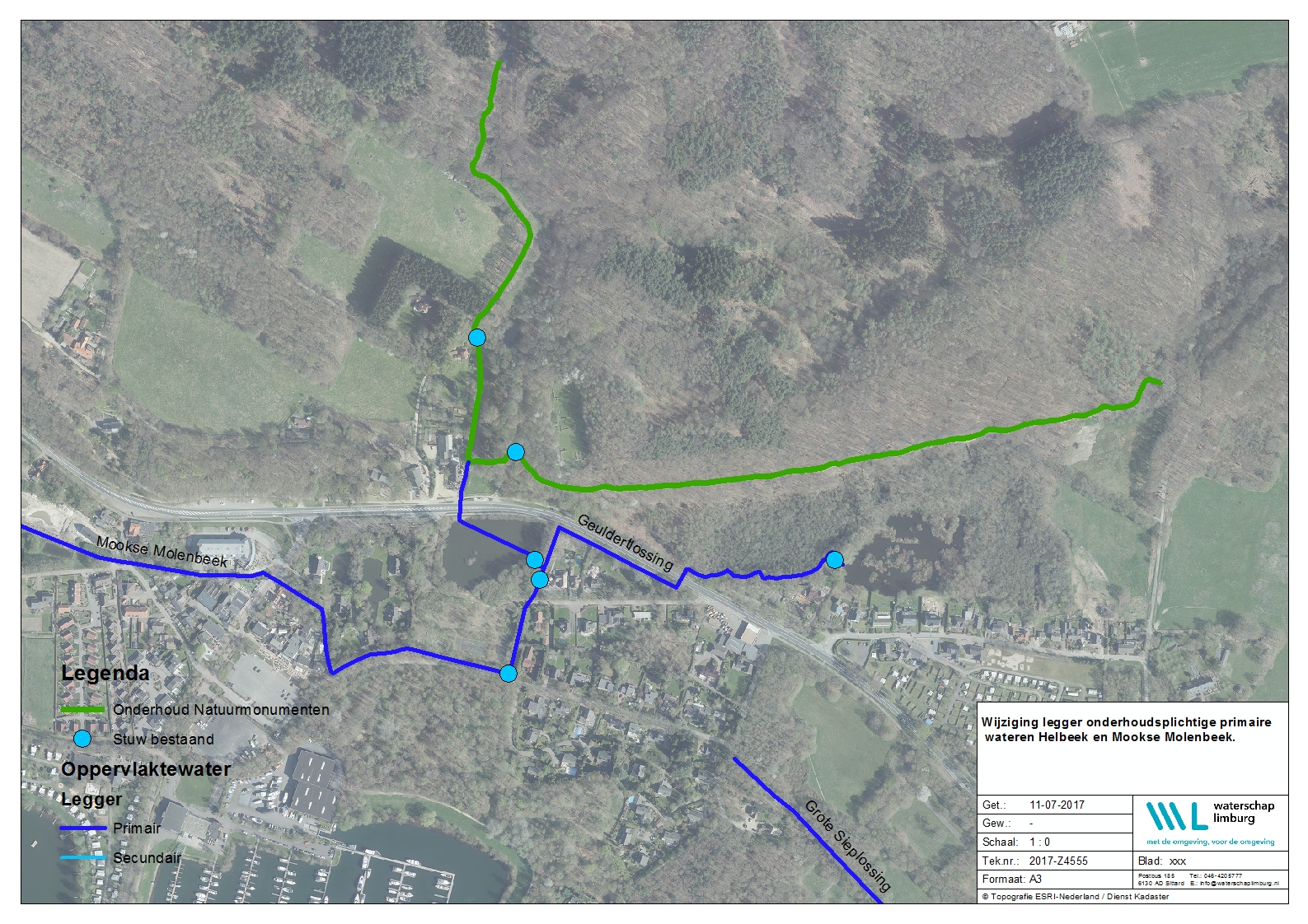 Het dagelijks bestuur van Waterschap Limburg maakt bekend dat het voornemens is om de legger van oppervlaktewaterlichamen te wijzigen als bedoeld in artikel 5.1 van de Waterwet en artikel 78 van de Waterschapswet. De wijziging heeft betrekking op het wijzigen van de onderhoudsplichtige van de oppervlaktewateren genaamd Helbeek en Mookse Molenbeek (deels) in de gemeente Mook en Middelaar. De leggerwijziging is ingeschreven onder zaaknummer 2017-Z4555.