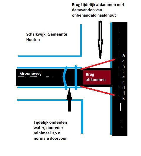 Hoogheemraadschap De Stichtse Rijnlanden - Watervergunning voor het tijdelijk afdammen van een watergang en omleiden van oppervlaktewater voor werkzaamheden aan een brug bij de Groeneweg nabij de Achterdijk 19 in Schalkwijk (code HDSR65004)