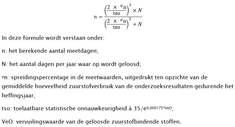 Het aantal vervuilingseenheden wordt bepaald door middel van meting, bemonstering en analyse van het afvalwater. Daarbij maakt het niet uit of dit elk etmaal geschiedt of gedurende een beperkt aantal etmalen.