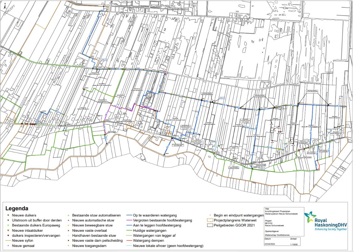 Als onderdeel van het gehele plan worden nieuwe watergangen gegraven en peilen aangepast in het gebied. Vooruitlopend op de realisatie van het gehele plan wil het waterschap gelijktijdig met de aanleg van de te verleggen Steemanstraat een nieuwe watergang realiseren. Deze watergang is onderdeel van het toekomstige waterhuishoudingssysteem. In onderstaande figuur staat de ligging van de watergang weergegeven. Zie Figuur 1 1