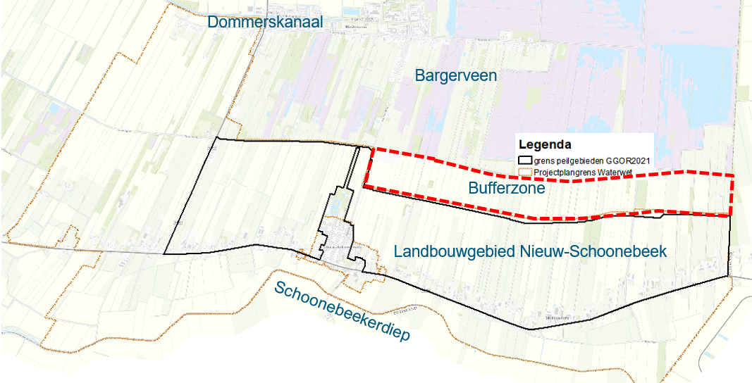 In 2008 heeft waterschap Vechtstromen in het GGOR (Gewenst Grondwater en Oppervlaktewater Regime) voor het Natura 2000-gebied Bargerveen en het landbouwgebied Nieuw Schoonebeek en Emmen Zuid de mogelijkheden onderzocht om de gewenste grond- en oppervlaktewater situatie in en om het Bargerveen te realiseren. In dit traject kwam Buffer Zuid (zie hoofdstuk 1.3), een bufferzone van 500 m over het traject tussen de Kerkenweg en de Duitse grens, als beste optie naar voren in combinatie met een aantal waterhuishoudkundige maatregelen in het landbouwgebied Nieuw-Schoonebeek. Buffer Zuid en de waterhuishoudkundige maatregelen in het landbouwgebied hebben een nauwe samenhang met elkaar.