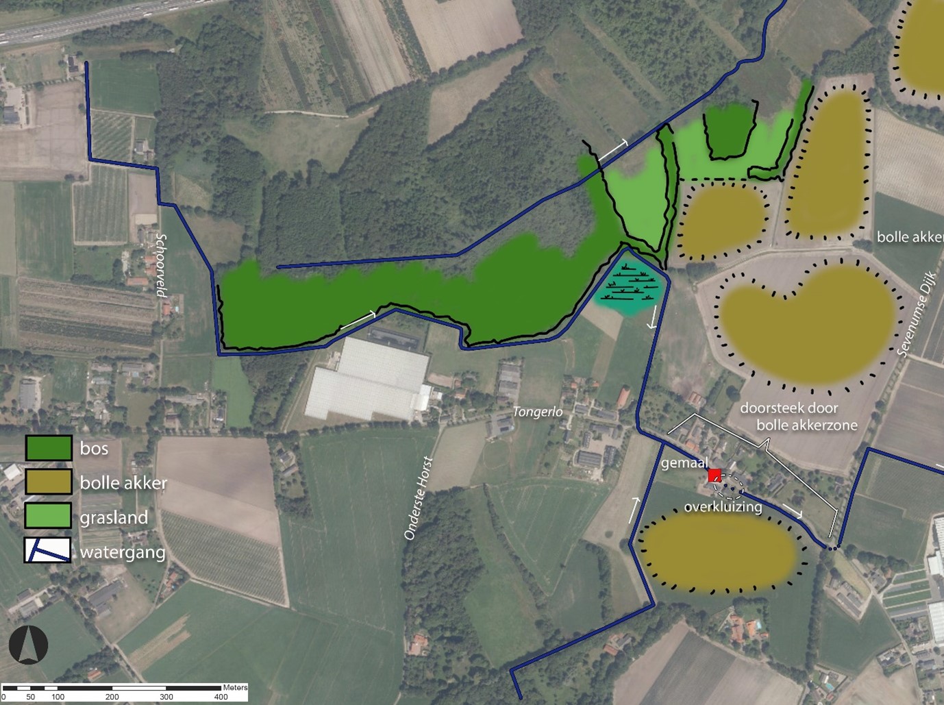 Het plangebied van Asset project ‘Tongerlo’ bevindt zich bij de gelijknamige Buurtgemeenschap ‘Tongerlo’ en is onderdeel van de gemeente Maasbree (zie figuur 1). Gemaal Tongerlo is eind jaren ’90 aangelegd om het achterliggende stroomgebied te ontwateren richting de lange heide, ook is er een fysieke scheiding aangebracht tussen Elsbeek en Tongerlo.