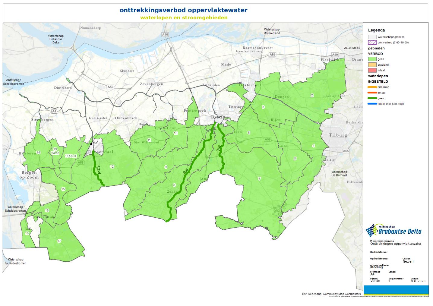 In onderstaande deelstroomgebieden wordt het onttrekkingsverbod uit oppervlaktewater ingetrokken (zie figuur 1)