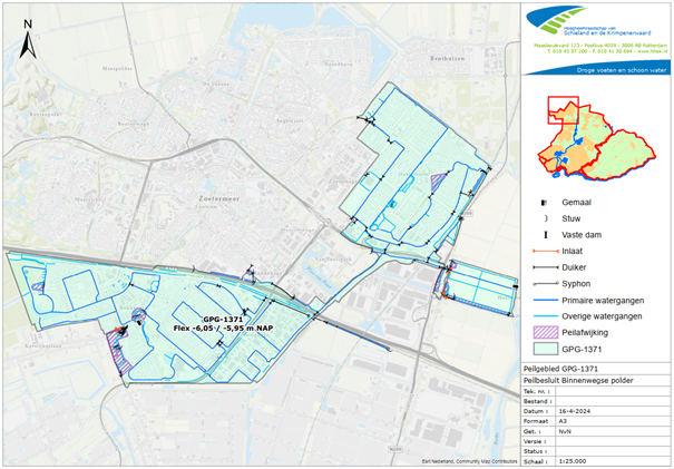 In de Zuid-Hollandse Omgevingsverordening (lit. 10) is bepaald dat voor alle wateren binnen het beheergebied van het hoogheemraadschap van Schieland en de Krimpenerwaard (HHSK) peilbesluiten moeten worden vastgesteld. De peilbesluiten moeten actueel zijn (artikel 7.5). Het waterschap heeft de inspanningsverplichting om het peilbeheer zo goed mogelijk overeen te laten komen met het peilbesluit.