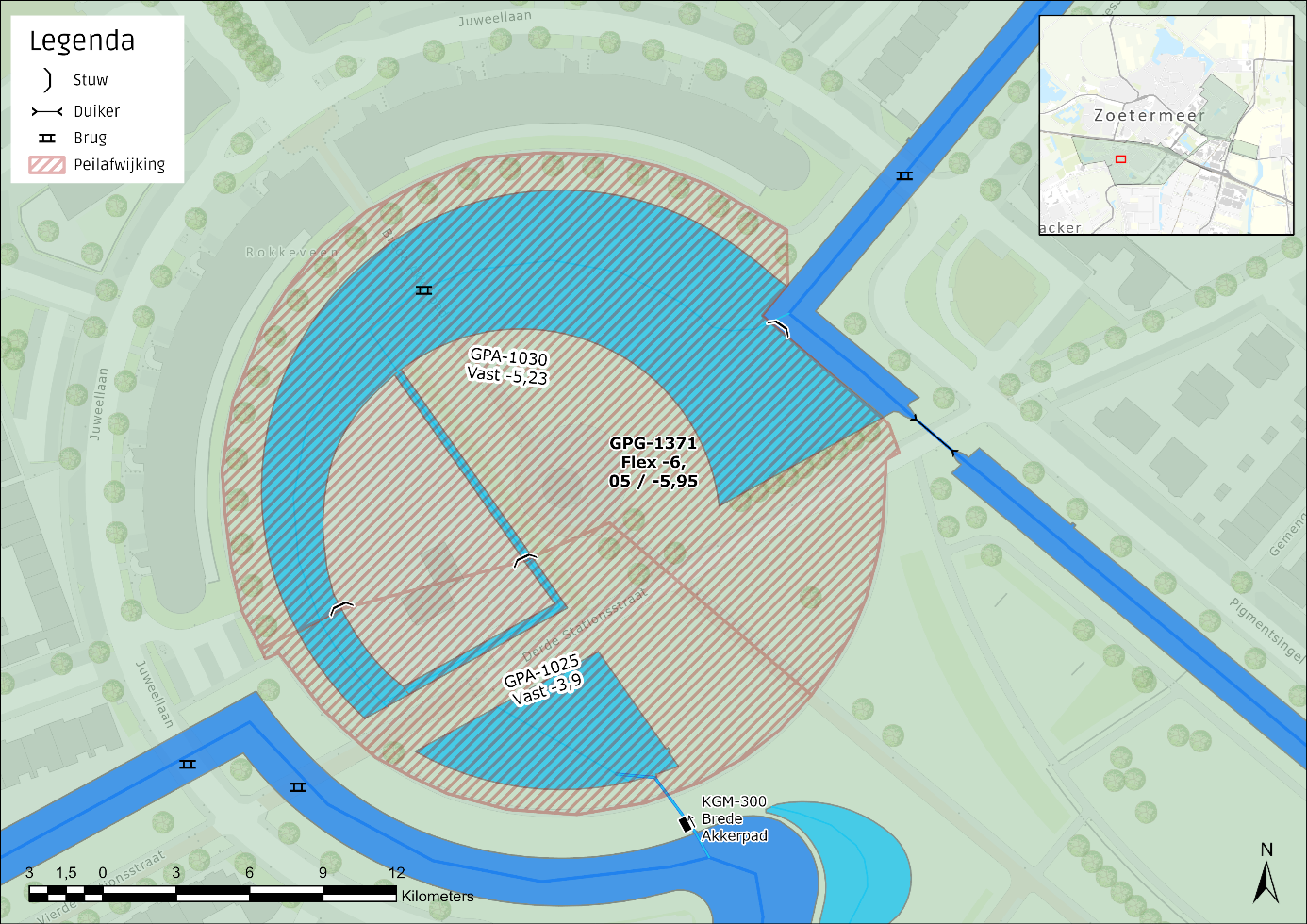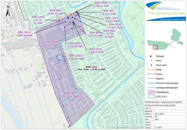 Op de peilbesluitkaart en in figuur 16 zijn de peilafwijkingen in de omgeving Sieraadlaan opgenomen.