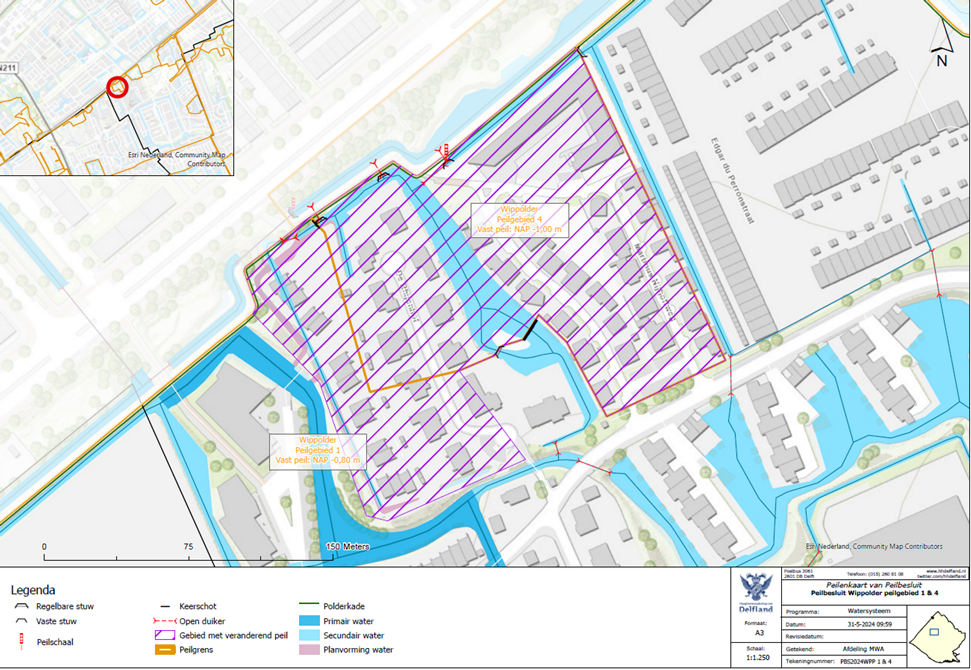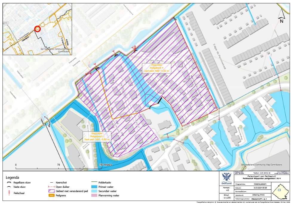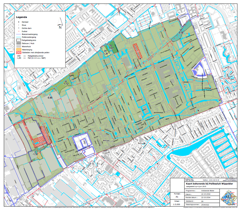 Figuur 2: Peilenkaart van peilbesluit Wippolder uit 2015