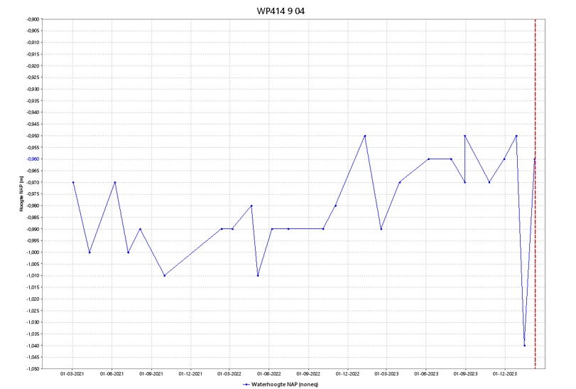 Figuur 4: meetreeks gemeten waterpeilen ter plaatse van peilschaal W414 9 04