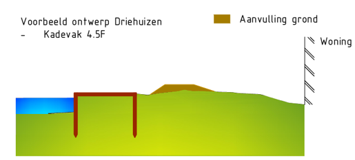 In Driehuizen wordt de bestaande dijk tussen de woningen en het boezemwater opgehoogd.