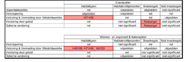 Voor de aanwezige stikstofgevoelige habitattypen geldt dat er eveneens sprake kan zijn van een overschrijding van de toegestane stikstofwaarden door het uitvoeren van de werkzaamheden in kadevak 1 en 5.2. De verstoring van de Rietzanger en de stikstofgevoeligheid is afhankelijk van het ingezette materieel, uitvoeringslocaties en uitvoeringsperiode in het jaar. De mogelijke negatieve effecten zijn voor de niet-vrijgestelde werkzaamheden in kadevak 1 en kadevak 5.2 nader beoordeeld in een Passende beoordeling.