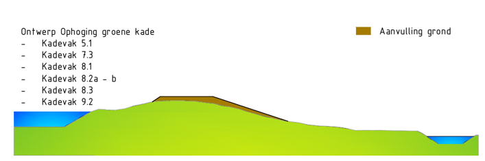 Bij West-Graftdijk wordt t.h.v. de Kanaaldijk het bestaande grondlichaam tussen de weg en het boezemwater opgehoogd. Bij de Noorderstraat wordt voor een korte strekking de huidige dijk opgehoogd. Ten slotte vindt t.h.v. Oudelandsdijkje voor een gedeelte een grondaanvulling op de binnenberm plaats.