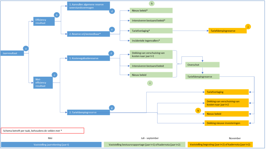 Het stroomschema gaat uit van een positief jaarresultaat per taak. Indien sprake is van een negatief jaarresultaat bij een taak, dan vindt er geen analyse plaats om te komen tot een splitsing van het resultaat in efficiency en niet-efficiency. Dat zou namelijk kunnen leiden tot een storting in de algemene reserve vrij besteedbaar en tegelijkertijd een onttrekking en daarmee uitholling van een bestemmingsreserve van een taak.