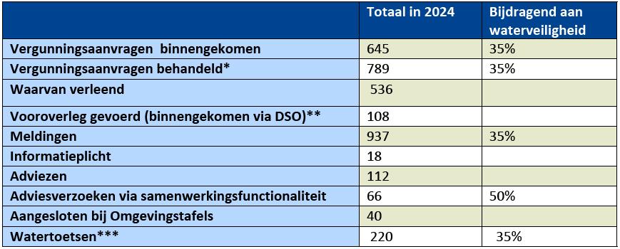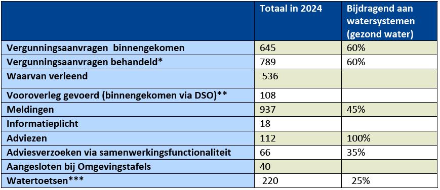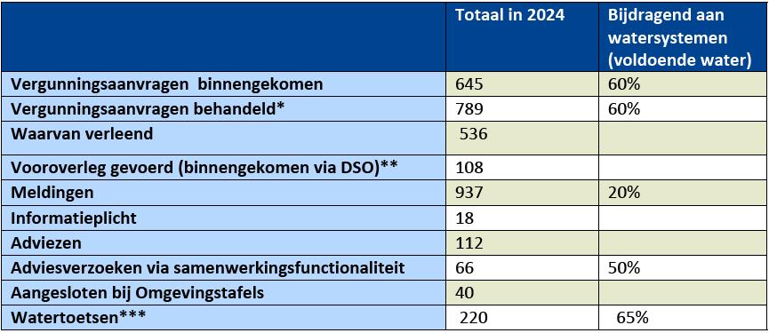 ***Een groot gedeelte van de watertoetsen die eind 2023 is ingediend, is pas in 2024 behandeld. Daarom ligt het aantal van de afgehandelde watertoetsen hoger dan het genoemde aantal.