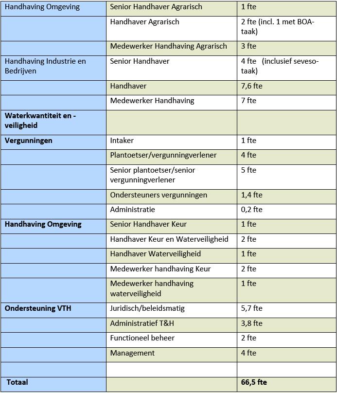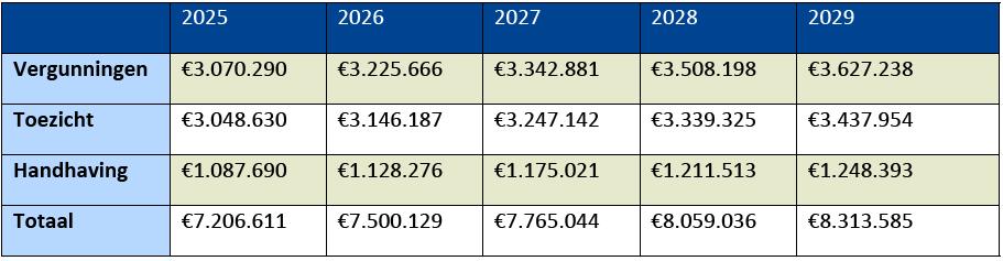 De benodigde middelen worden bepaald aan de hand van achterstanden die nu ontstaan (zijn). Om deze achterstanden in te halen is een bepaalde benodigde extra capaciteit nodig. De achterstand op het toezicht op verleende vergunningen bedraagt circa 500 zaken. Hiervoor geldt een tijdsbestek van circa 3 uur per zaak. Om de achterstand in één jaar op te lossen is dus 1 extra fte noodzakelijk. Vanwege langdurige ziekte uitval op het gebied van waterkwaliteit bij vergunningen worden naast beschikbare fte ook personen ingehuurd. Deze kosten zijn altijd hoger dan formatiegelden. De verwachting is dat deze kosten in 2025 €100.000 zullen bedragen voor circa 800 uur. Door vertrek van verschillende collega’s is er op dit moment 0,6 fte meer benodigd dan beschikbaar.