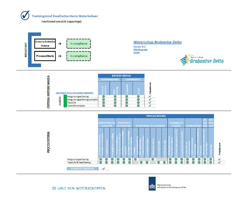 Het voldoen aan de landelijke kwaliteitscriteria VTH Waterbeheer maakt structureel onderdeel uit van de P&C-cyclus van het VTH-proces. Hieronder is te zien dat VTH hieraan voldoet. De nieuwe medewerkers die VTH in 2025 verwacht, worden hier gedurende het jaar ook op getoetst en zo nodig opgeleid.