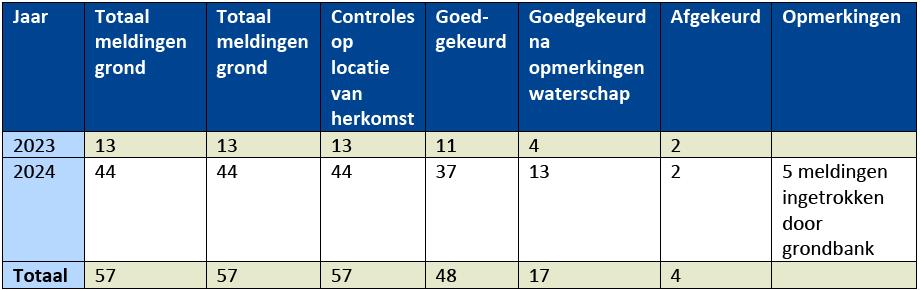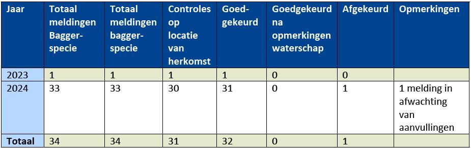 Het waterschap houdt op passende wijze toezicht op de grootschalige bodemtoepassingen zoals die in de Plas Caron plaats heeft gevonden. Het gehele jaar heeft er preventie toezicht plaatsgevonden op alle toepassingen. Dit houdt in dat een partij vooraf administratief goedgekeurd wordt. Tijdens de daadwerkelijke toepassing wordt altijd toezicht gehouden en gecontroleerd of de partij de juiste correcte kwaliteit heeft. Hieronder in het overzicht met de cijfers van toepassingen van baggerspecie in 2024 komt het daardoor voor dat er 31 partijen (administratief) goedgekeurd zijn, terwijl er 30 controles hebben plaatsgevonden.