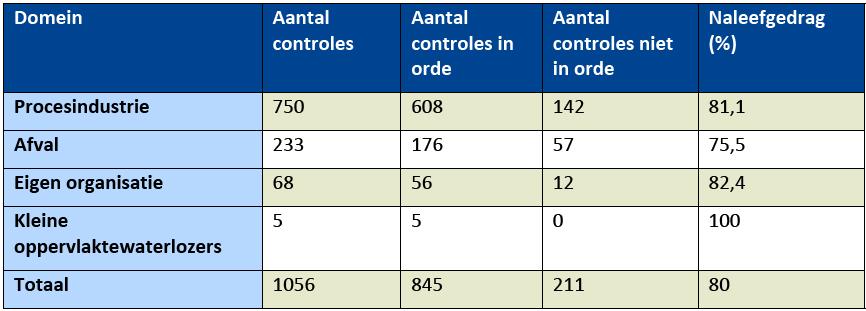 Voor 2024 zijn er 11 industriële bedrijven voorgedragen voor dit interventietoezicht waarbij het waterschap heeft deelgenomen aan de fysieke controles. Dit betroffen 9 risicorelevante bedrijven met een ‘hoge’ risicoscore, 1 bedrijf met een ‘gemiddelde’ risicoscore en 1 bedrijf met een ‘lage’ risicoscore. Tijdens de controles wordt vooral gekeken naar de kwaliteit van risicobeheersing door de bedrijven en minder naar regelnaleving.