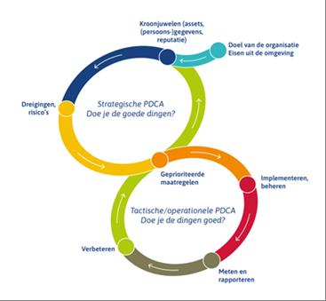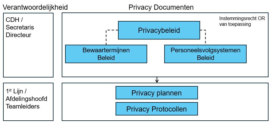 Deze methodiek verdeelt risicobeheer in drie niveaus: de eerste lijn beheert risico's in het dagelijkse werk, de tweede lijn ondersteunt en monitort en de Functionaris Gegevensbescherming, de derde lijn, houdt toezicht en controleert onafhankelijk de effectiviteit van het risicobeheer. Als onderdeel van de eerste lijn worden de proceseigenaren ondersteund door de Privacy Officers voor de processen met verwerking van persoonsgegevens die onder zijn of haar verantwoordelijkheid vallen.
