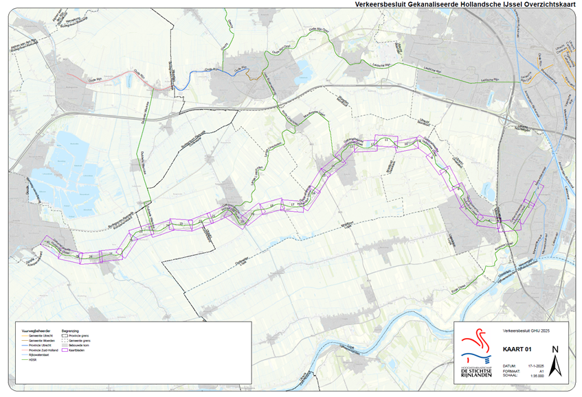 De GHIJ loopt door de provincies Utrecht en Zuid-Holland. Het vaarwegbeheer en nautisch beheer voor de GHIJ berust voor het deel dat gelegen is in de provincie Utrecht bij het college van dijkgraaf en hoogheemraden. Dat is bepaald in artikel 4:53 Omgevingsverordening provincie Utrecht, in samenhang met het Delegatiebesluit nautisch beheer Gekanaliseerde Hollandsche IJssel en Grecht 2016. Voor het deel dat is gelegen in de provincie Zuid-Holland is het college aangewezen als bevoegd gezag, op grond van artikel 6.4 Zuid-Hollandse Omgevingsverordening en Artikel 4 Verordening nautisch beheer-Zuid Holland.
