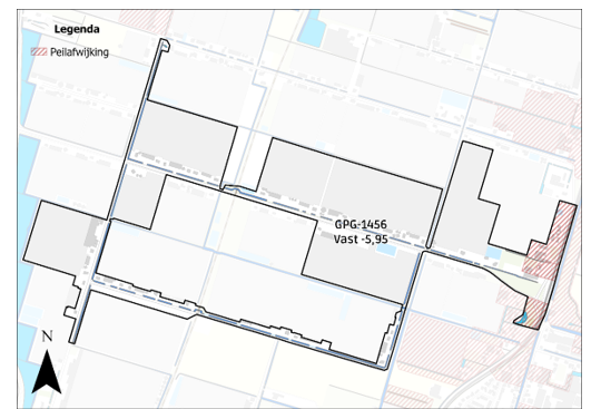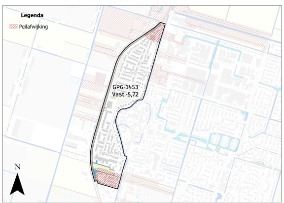 In dit peilgebied ligt één peilafwijking. In bijlage VI is een kaart te zien van de peilafwijkingen. In onderstaande tabel is de peilafwijking te zien binnen dit peilgebied die in stand wordt gehouden.