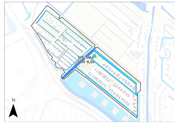 De hoofzakelijke functie van dit gebied is (toekomstige) woningbouw. De mediane drooglegging in het gebied is ongeveer 1,5 tot 1,3 meter. Er is geen aanleiding om het waterpeil aan te passen. Het waterpeil blijft FLEX -6,80 / -6,60 m NAP.