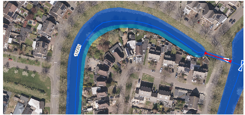 Figuur 2.1: Een primair water met een secundair water langs de oever ingetekend in de waterschapsverordening. Het onderhoud van het secundaire water is voor de aanliggend eigenaar.