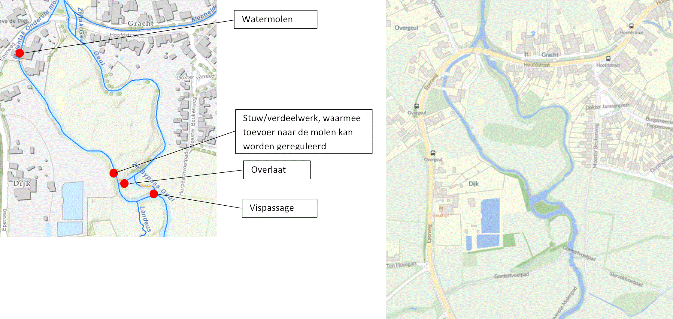 Het projectgebied is grofweg gelegen tussen Hurpeschvoetpad en de Hoofdstraat in Mechelen, Gemeente Gulpen-Wittem (zie figuur 1). Primair richt de projectopdracht zich op het realiseren van functionele stroomopwaartse en stroomafwaartse vismigratie, hieraan hangt vast het onderzoeken op welke wijze de huidige bekkenvispassage vervangen, verbeterd, aangepast of verplaatst moet worden. Aanvullend wordt onderzocht óf en in welke vorm maatregelen noodzakelijk zijn om het Geultracé tussen het verdeelwerk en de monding van de molentak te laten voldoen aan de ecologisch doelstellingen voor vismigratie en in hoeverre maatregelen voor lokstroomwerking richting vispassage noodzakelijk zijn. Bij de herinrichting dient rekening gehouden te worden met inrichtingsmaatregelen uit het soortbeschermingsplan Beekprik en maatregelen uit het Natura 2000-beheerplan Geuldal.