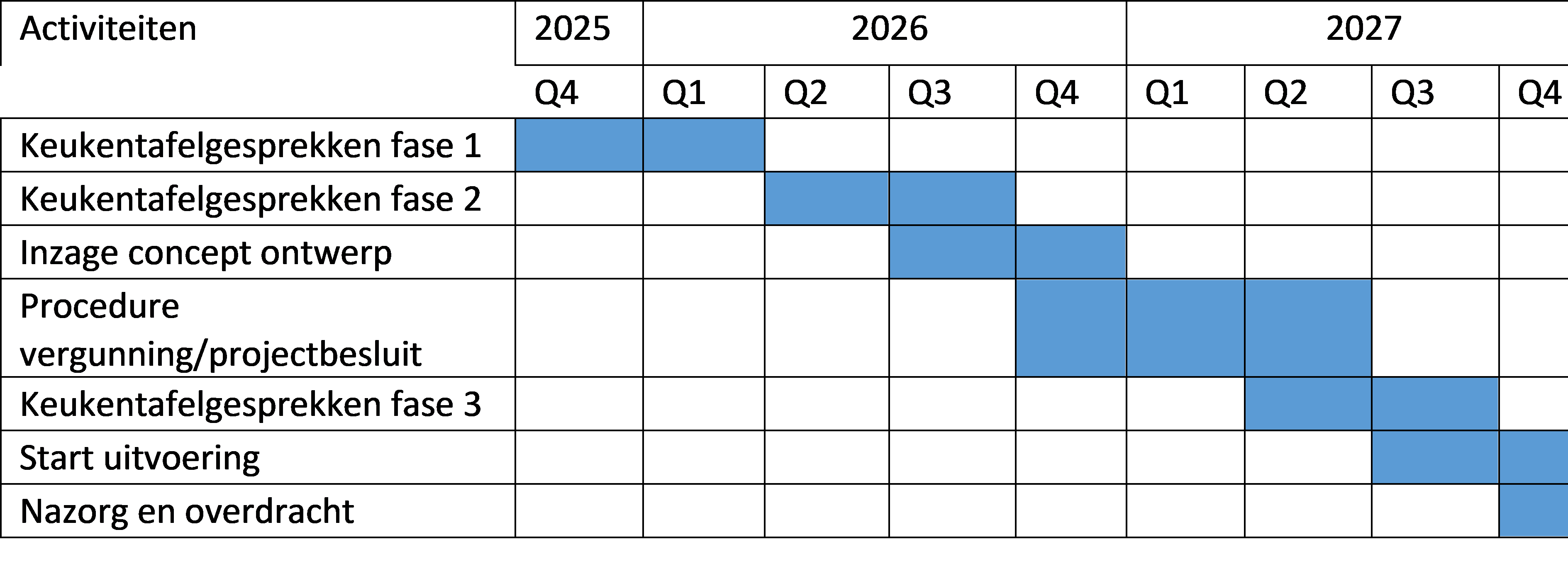 De onderstaande tabel geeft de planning van de genoemde participatieactiviteiten weer.