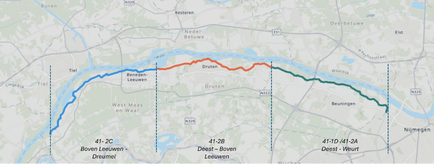 Het project ‘Zuidelijke Waaldijk Oost’ is opgedeeld in drie dijktrajecten: