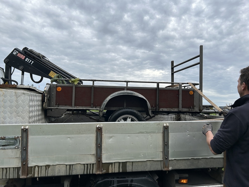 Op 13 november 2025 is de aanhanger met behulp van een kraanwagen uit de watergang verwijderd en vervolgens opgeslagen op onze locatie in Zuidbroek.