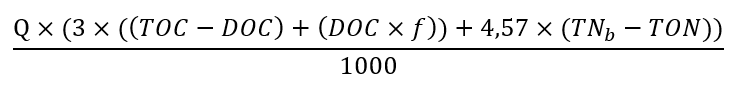 Als de TOC-waarde voor ten minste 25% afkomstig is van biologisch niet of nagenoeg niet afbreekbare stoffen in het afvalwater, wordt op die waarde een correctie toegepast door deze te vermenigvuldigen met de breuk: