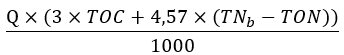 De berekende f-factor (f) uit het BZV19 onderzoek of de Zahn-Wellens test wordt als volgt in de heffingsformule toegepast ter bepaling van het aantal kg zuurstofverbruik: