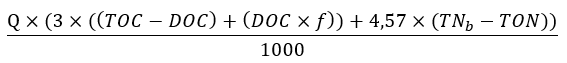 Het zuurstofverbruik van de stoffen die in een kalenderjaar worden afgevoerd, wordt bepaald op basis van de som van het chemisch zuurstofverbruik door omzetting van de hoeveelheid totaal organisch koolstof in de stoffen en het zuurstofverbruik door omzetting van de hoeveelheid totaal stikstof verminderd met de som van nitriet-stikstof en nitraat-stikstof in de stoffen, zoals voorgeschreven in Bijlage 1. Hierbij wordt het chemisch zuurstofverbruik gesteld op driemaal het gehalte totaal organisch koolstof in de afgevoerde stoffen.