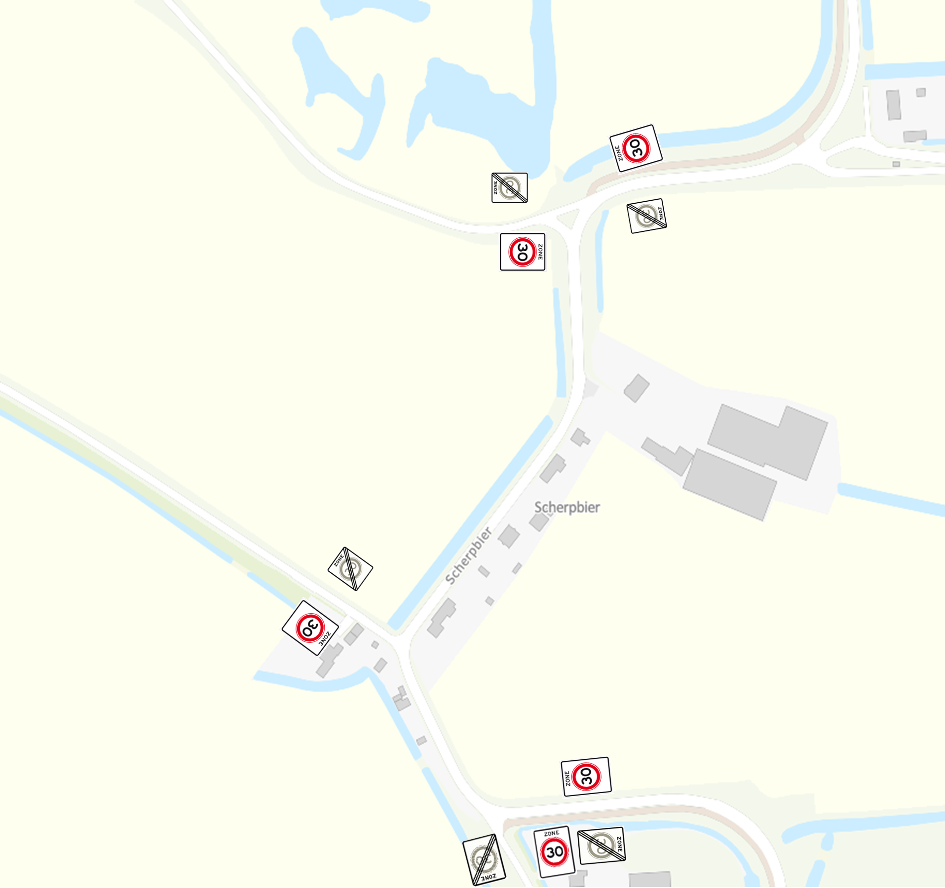 plaatsen van borden A130zb voor het instellen van de zone en de borden A230ze voor het afsluiten van de zone aan de Scherpbier op de driesprong met de Ringdijk, Scherpbierseweg en de Scherpbier en aan de Scherpbier op de driesprong met de Henricusdijk, Scherpbier en 2e Hogendijk;