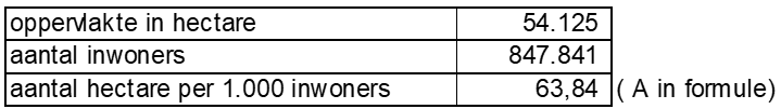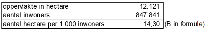 waarbij A staat voor het aantal hectaren ongebouwde onroerende zaken, niet zijnde natuurterreinen, per 1000 inwoners in het gebied van het waterschap.