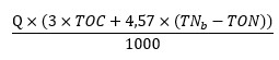 Het zuurstofverbruik van de stoffen die in een kalenderjaar worden afgevoerd, wordt bepaald op basis van de som van het chemisch zuurstofverbruik door omzetting van de hoeveelheid totaal organisch koolstof in de stoffen en het zuurstofverbruik door omzetting van de hoeveelheid totaal stikstof verminderd met de som van nitriet-stikstof en nitraat-stikstof in de stoffen, zoals voorgeschreven in Bijlage 1. Hierbij wordt het chemisch zuurstofverbruik gesteld op driemaal het gehalte totaal organisch koolstof in de afgevoerde stoffen.