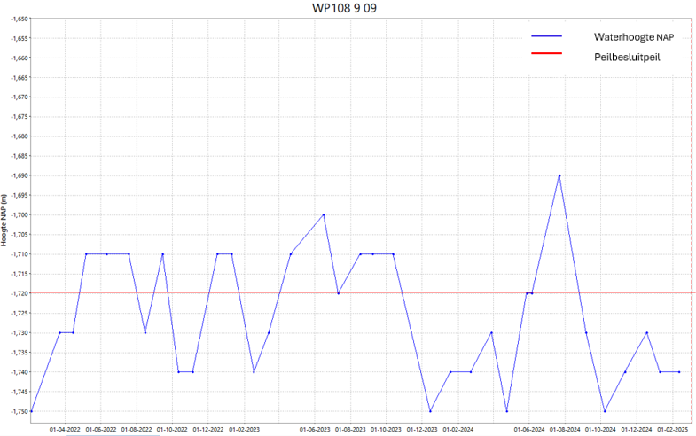 Deze afweging gaat over peilgebied 3. In de praktijk wordt hier een vast peil van 1,72 meter beneden NAP aangehouden.