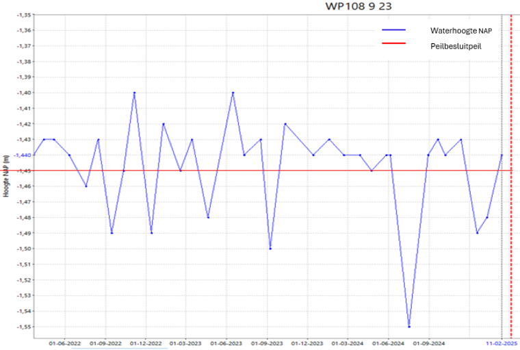 Figuur 4c Peilschaal-aflezing in peilgebied 11 (peilschaal WP108 9 23):