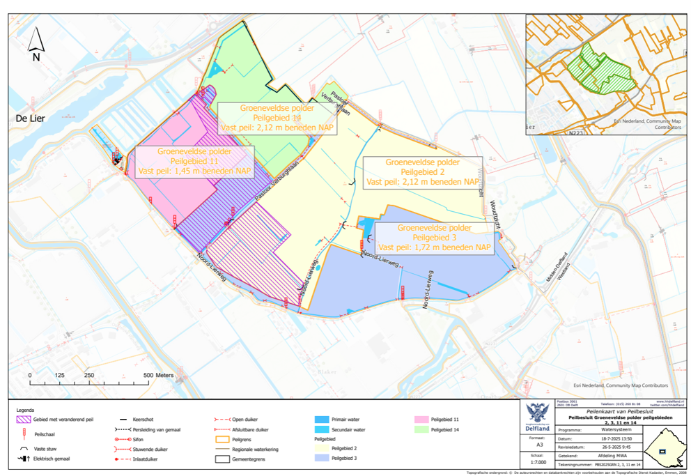 Peilbesluit Groeneveldse polder, peilgebieden 2, 3, 11 en 14, nabij de Noord-Lierweg in De Lier