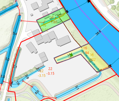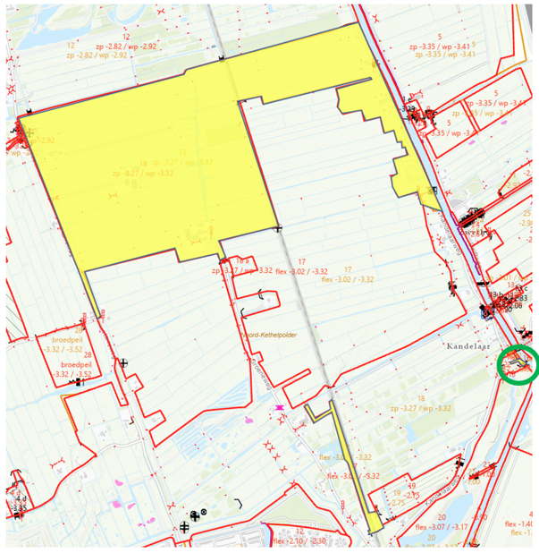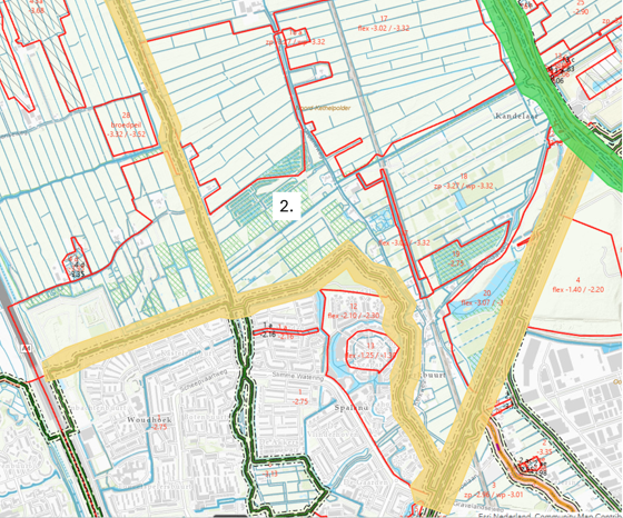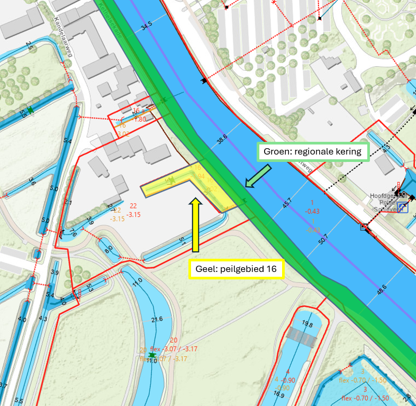 Figuur 9 Gebied 16a (groen) met afwijkend waterpeil